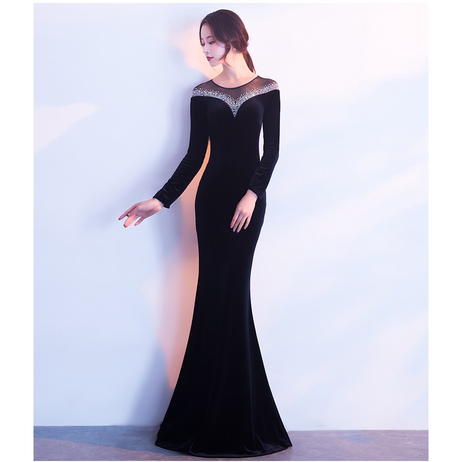 Velvet Formal Dress Vintage Elegant Women Girl Long Dinner Party Maxi Dresses Shopee Malaysia